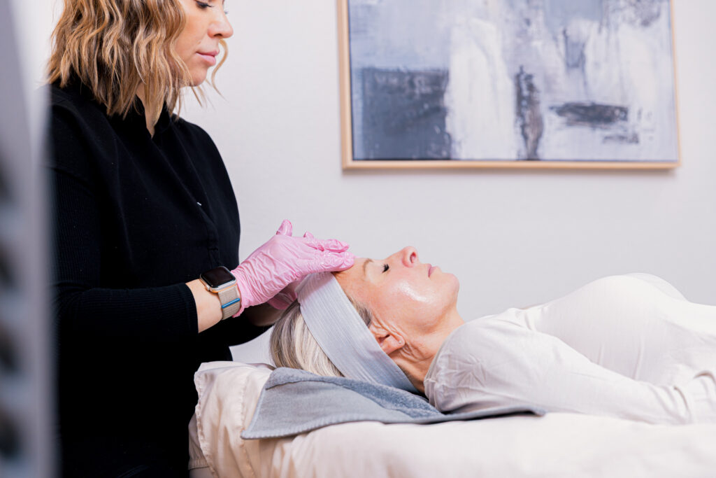Most clients have little to no redness and leave with skin that looks smooth and refreshed. Some may feel mild tightness or sensitivity for a few hours, but there is no downtime and no peeling.