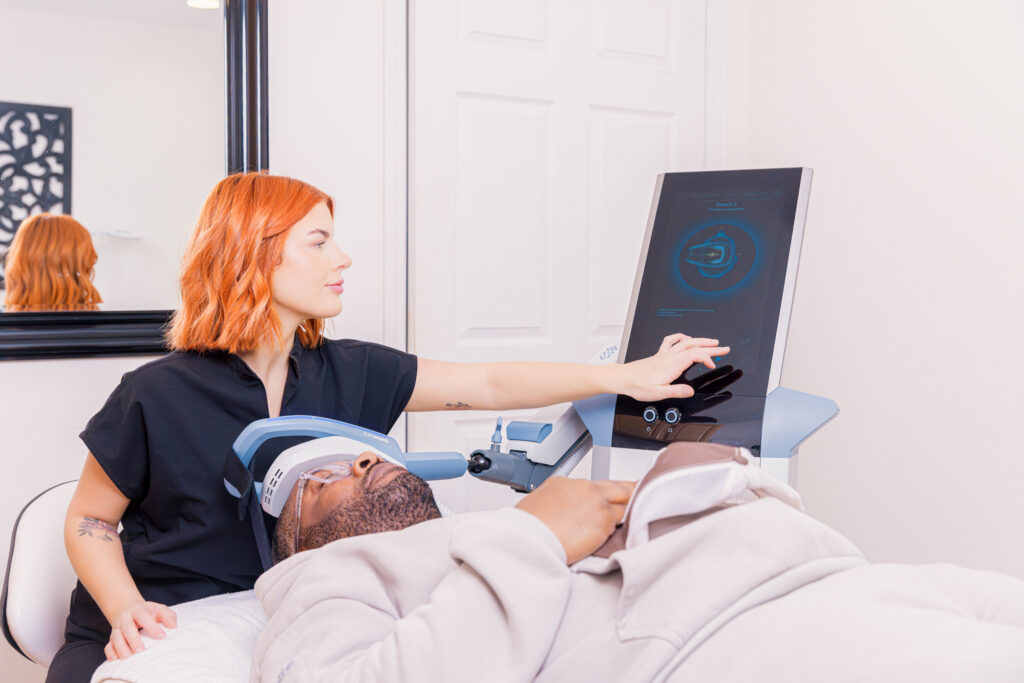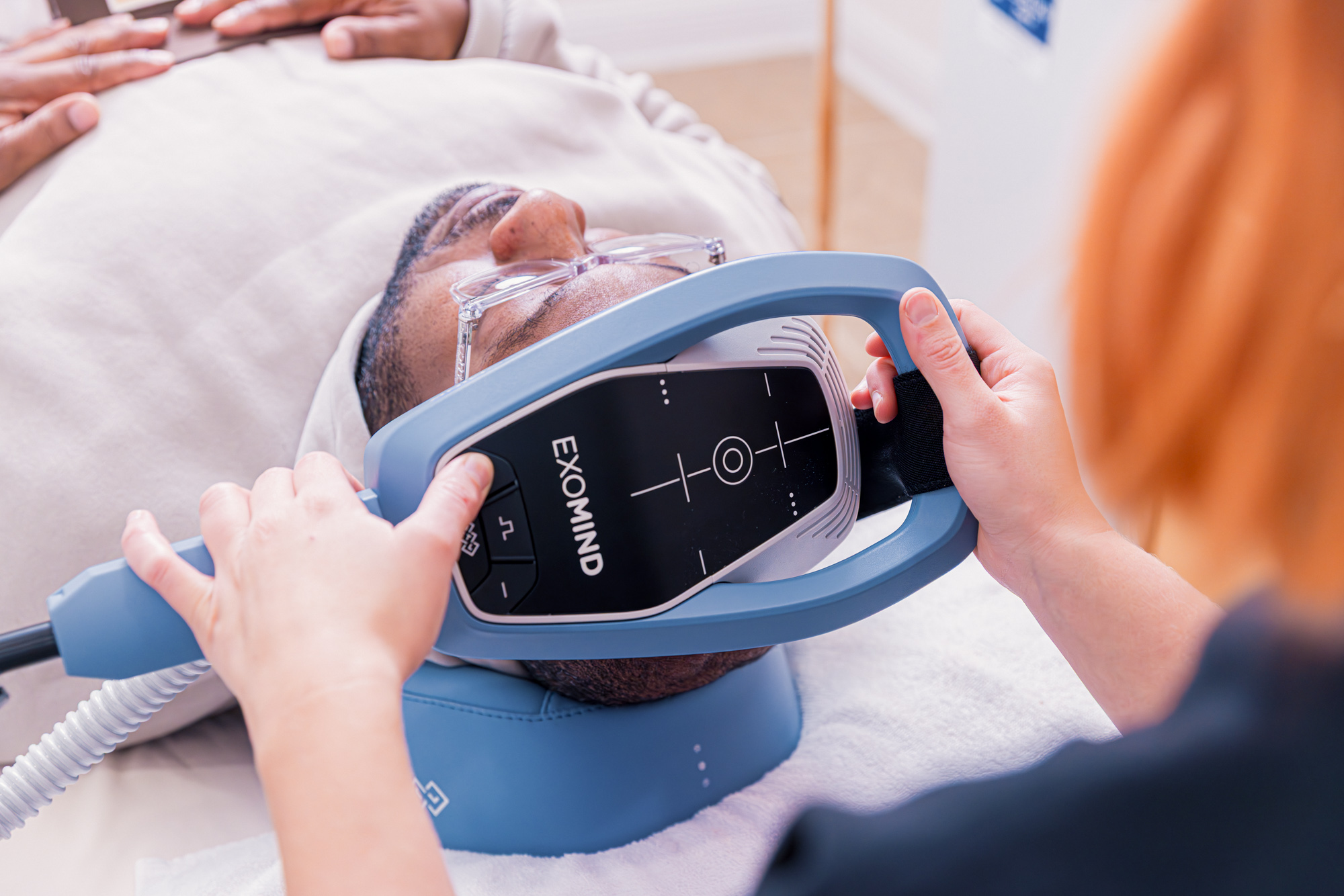 Exomind therapy is a next-generation form of TMS (transcranial magnetic stimulation), a noninvasive technology. It uses magnetic pulses to stimulate specific brain regions associated with mood, focus, and emotional regulation.